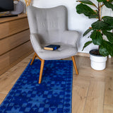 PROXIMA szőnyegünk intenzív és élénk kék színével izgalmas kiegészítője lesz otthonodnak. Letisztult, rojt nélküli kivitelezésének köszönhetően nemcsak a padlón, hanem a falon is remekül mutat.