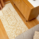 TIERIS szőnyegünket csipkeszerű geometrikus mintázata teszi igazán különlegessé, melyet a finom pasztell tónusok még inkább kiemelnek. A szövési technikából eredően a szőnyeg mindkét oldala használható színoldalként.